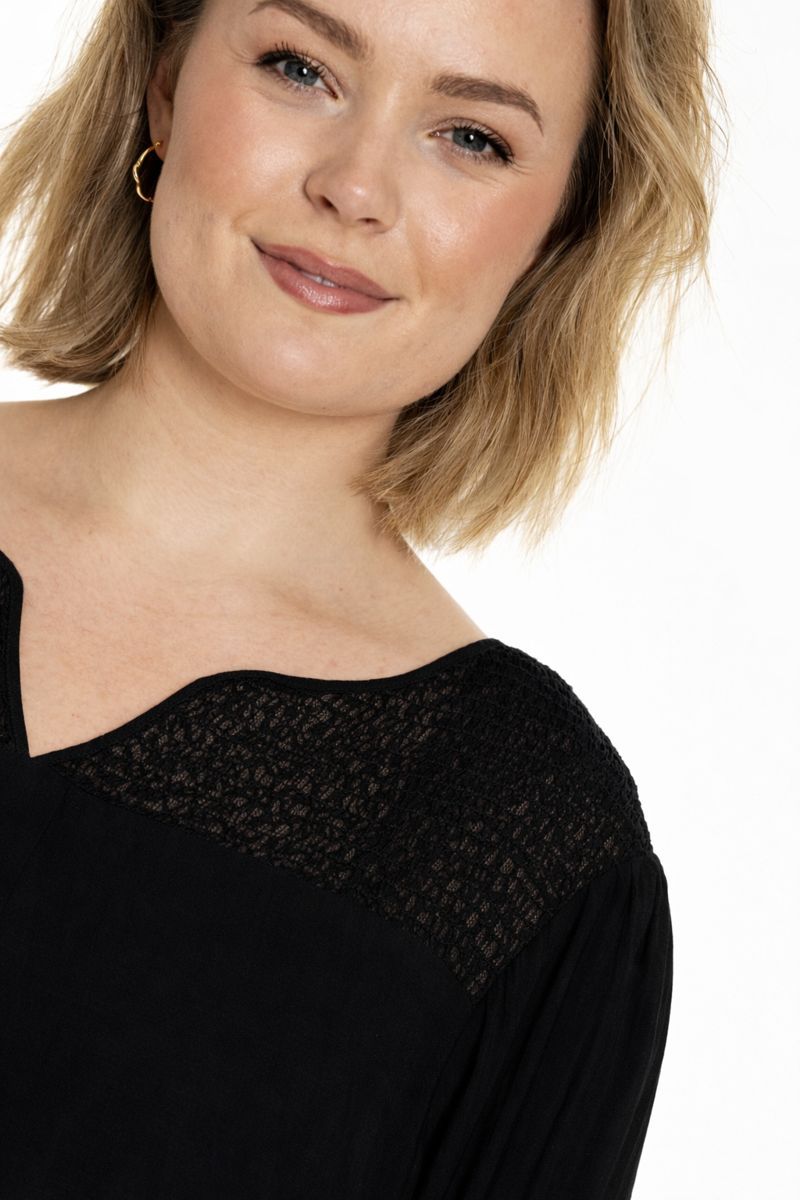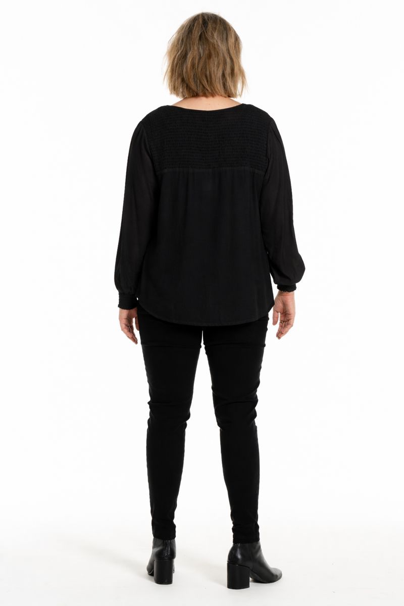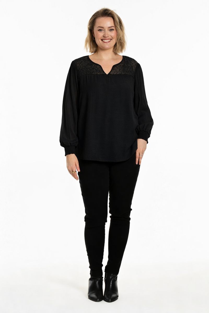 Sort bluse med smock, G256035