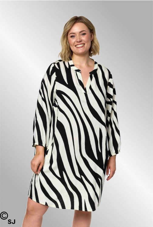 En smuk tunika i et zebra look print. Lommer forpå, 3/4 ærmer og V hals.