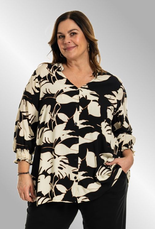 Sort skjorte/bluse med råhvid bladmønster, G245034 Sort skjorte/bluse med råhvid bladmønster, G245034 Sort skjorte/bluse med råhvid bladmønster, G245034 Sort skjorte/bluse med råhvid bladmønster, G245034 Sort skjorte/bluse med råhvid bladmønster, G245034